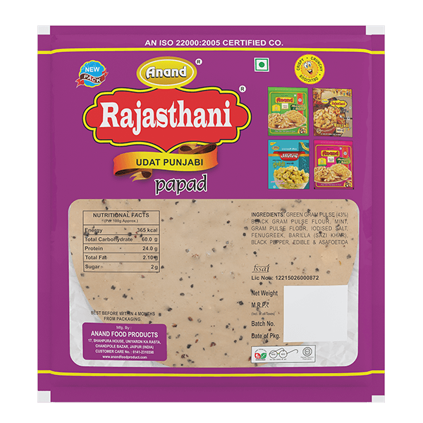 NGREDIENTS : Black Gram Pulse Flour (85%), Black Pepper, Iodised Salt, Raising Agent (500(i) & 500(ii), Edible oil & Asafoetida